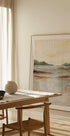 Pehmeä ja mieleenpainuva maisemamaalaus rauhallisilla siveltimen vedoilla ja vaimennetuilla väreillä. Tämä abstrakti vesimaisema yhdistää maan, veden ja taivaan rauhallisessa horisontissa, joka herättää tyyneyden ja mietiskelyn tunteita. Täydellinen taideteos lisäämään rauhoittavaa ja luonnon inspiroimaa tunnelmaa mihin tahansa huoneeseen.