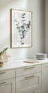 Rauhallinen ja minimalistinen juliste, jossa on eukalyptuksen oksia, joiden pyöreät, mattapintaiset lehdet menevät päällekkäin hieman kaksoisvalotuksessa. Lempeät vihreät sävyt kelluvat vaaleaa, lähes painotonta taustaa vasten ja luovat ilmaa, tasapainoa ja pohjoismaista yksinkertaisuutta. Täydellinen sellaisenaan tai osana harmonista gallerian seinää. Ihanteellinen olohuoneeseen, makuuhuoneeseen tai toimistoon.