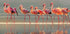 Upea luontokuva flamingoparvesta, joka liikkuu sulavasti matalassa vedessä, ja tyylikkäät vaaleanpunaiset höyhenet peilautuvat kauniisti järven pintaan. Tämä rauhallinen luontokuva vangitsee harmoniaa, liikettä ja villiä romantiikkaa – täydellinen seinätaide lintujen ja luonnon ystäville.
