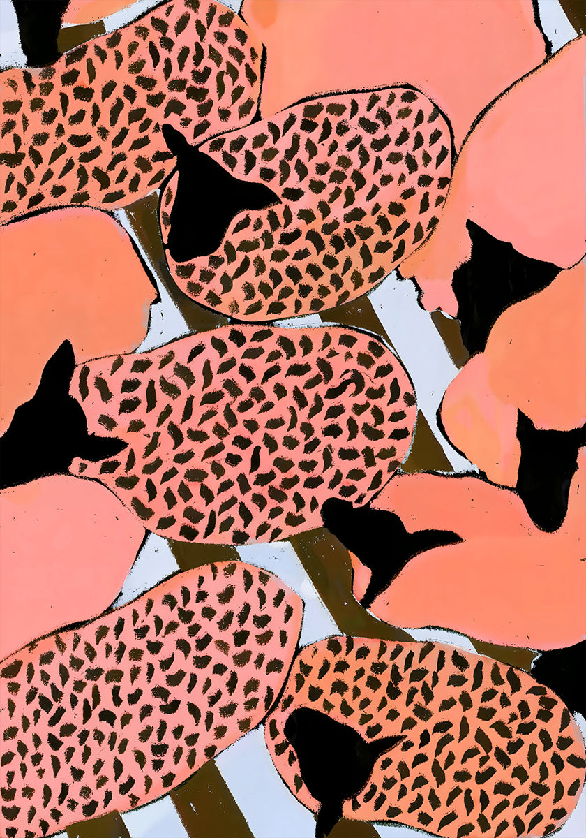 Koko suunnittelu: Motiivi on painettu reunasta reunaan ja peittää koko julisteen pinnan ilman reunuksia.