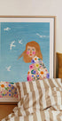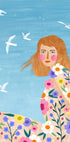 Hassu ja värikäs kuva naisesta käärittynä kukkaviittaan kirkasta sinistä taivasta vasten. Lentävien lintujen ympäröimä teos herättää vapautta, iloa ja kevään tuoretta henkeä. Legendaarinen, mutta myös rauhallinen, se yhdistää luonnon ja fantasia elävään moderniin tyyliin.