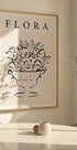 Hienostunut minimalistinen viivapiirros kukilla täytetystä maljakosta, elegantti mustavalkoinen tyyli. Taideteos yhdistää yksinkertaisuuden hienostuneisuuteen ja toimii ajattomana kukkaprinttina moderneihin ja nykyaikaisiin sisätiloihin.