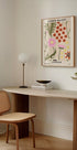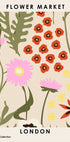 Näyttävä juliste, joka on saanut inspiraationsa vuosisadan puolivälin tyylistä, jossa on graafisia kukkia punaisena, vaaleanpunaisena ja keltaisena beigellä taustalla. Se edustaa Lontoon eloisia kukkamarkkinoita ja yhdistää retrotyylin kasvitieteelliseen viehätysvoimaan.