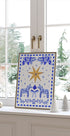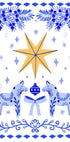Tunnelmallinen folk-vaikutteinen talvijuliste, Aliya Putrus: Kultainen tähti keskellä lumihiutaleiden, marjojen ja koristeellisen rusetin ympäröimänä, jossa pieni dalahevonen viehättävä yksityiskohta. Sinisen, valkoisen ja ruskean sävyt luovat skandinaavisen joulutunnelman, lämpimän ja nostalgisen. Täydellinen eteiseen, olohuoneeseen tai lastenhuoneeseen juhlakauden aikana.