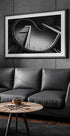 Et dramatisk sort-hvidt blik op mod Foster Tower i Madrids skyline, hvor skarpe linjer og glasflader rejser sig i stringent symmetri. Det dybe perspektiv fremhæver tårnets kraft og ro, og gør plakaten til et minimalistisk, urbant statement — af Antoni Figueras. Et arkitektonisk ikon fra CTBA, fanget i kølig monokrom ro.