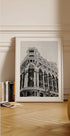 Hienostunut mustavalkoinen valokuva Prada-myymälästä Milanon Galleria Vittorio Emanuele II:ssa, koristeellisen arkkitehtuurin ja ikonisen mosaiikkilattian kehystettynä. Tämä printti yhdistää muotia ja historiaa ja ilmaisee italialaista eleganssia ja ajatonta tyyliä – täydellinen kulttuurin, ylellisyyden ja muotoilun inspiroimaihin sisätiloihin.
