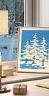 Harz Winter Trees af Rosi Feist indfanger den stille magi i Harzens skove: rækker af snedækkede graner rejser sig mod en kølig vinterhimmel. Grafiske former og dæmpede nuancer skaber ro og dybde, som inviterer til fordybelse. En elegant naturstudie, der bringer vinterens poesi ind i rummet. Perfekt til vinterstemning året rundt.
