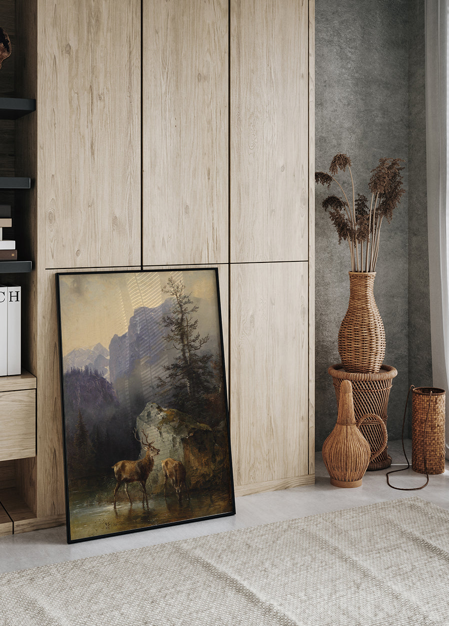 Hirsch And Tier An Der Tränke, Friedrich Gauermann Juliste
