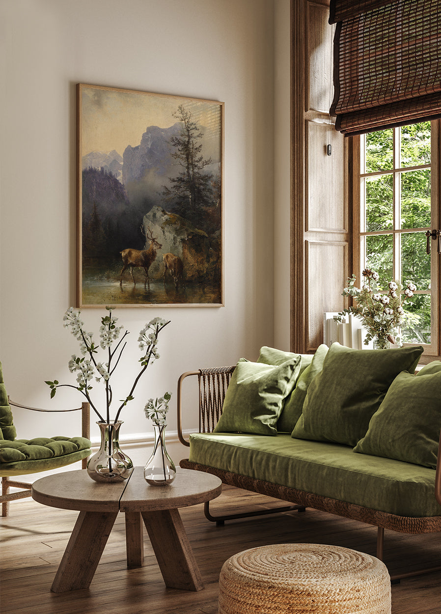 Hirsch And Tier An Der Tränke, Friedrich Gauermann Juliste