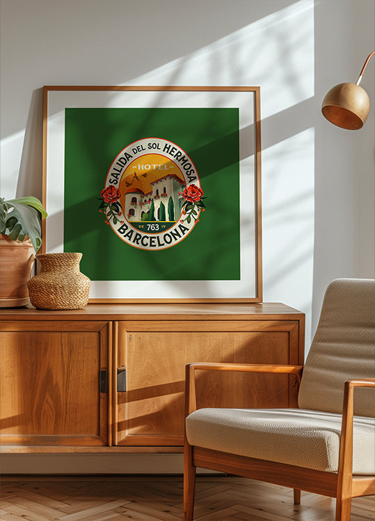 Valkoinen ruoka: Motiivi on painettu valkoisella, mattareunuksella kuvion ympärillä. Tämä antaa puhtaan ja tyylikkään ilmeen, joka korostaa aihetta ja antaa galleriahenkisen ilmeen.