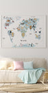 Kuvitettu maailmankartta söpöillä eläimillä -julisteella