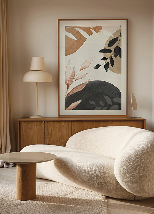 Valkoinen ruoka: Motiivi on painettu valkoisella, mattareunuksella kuvion ympärillä. Tämä antaa puhtaan ja tyylikkään ilmeen, joka korostaa aihetta ja antaa galleriahenkisen ilmeen.