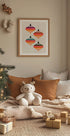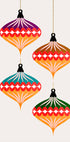 Värikäs ja leikkisä joulutaideteos geometrisine joulupalloilla vahvoissa väreissä. Abstrakteilla muodoilla ja juhlavilla kuvioilla muotoilu tuo iloa ja modernia tyyliä sesongin seinäkoristeisiin, jotka sopivat täydellisesti joulujuhliin.