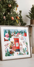Caroline Bonne Müllerin runollinen joulukuvitus: Lumisella kyläalueella iloinen koira, jolla on poronsarvet ja laukku, lähettää joulutervehdyksensä punaiseen postilaatikkoon. Lumihiutaleet putoavat talojen ja kuusien päälle, ja kohtaus huokuu huumoria, lämpöä ja odotusta – täydellinen lastenhuoneeseen ja mukavaan talvitunnelmaan.