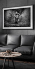 Dramaattinen mustavalkoinen aihe motocross-kuljettajasta, joka räjäyttää mudan ja veden läpi. Juliste säteilee nopeutta, energiaa ja raakaa adrenaliinia. Räjähtävä roiske osuu ajajaan intensiivisenä hetkenä, mikä tekee siitä erottuvan lausunnon moottoriurheilun ystäville ja voimakkaiden kuvien ystäville.