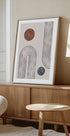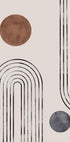 Tyylikäs abstrakti juliste vahvoilla geometrisilla muodoilla, ympyröillä ja kaarevilla mustilla viivoilla beigellä taustalla. Tämä minimalistinen taideteos on saanut inspiraationsa vuosisadan puolivälin modernista muotoilusta, ja siinä yhdistyvät tasapaino, rytmi ja eleganssi, mikä tekee siitä monipuolisen teoksen moderneihin sisätiloihin.