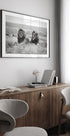 Kaksi majesteettista urosleijonaa lepää vierekkäin tuulen pyyhkäisemässä savannissa, harjansa silitellen tuulessa ja katseensa rauhallisina mutta valppaina. Mustavalkoinen sommitelma korostaa voimaa, läsnäoloa ja villiä kauneutta – Nicolás Merinon valokuvaama ajaton safarihetki Serengetistä. Heidän läheinen siteensä ja kuninkaallinen rauhallisuutensa voidaan tuntea.