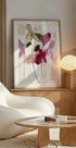 Runollinen, abstrakti kasvitieteellinen kokoonpano, jossa violetin ja kullan sävyt kohtaavat pehmeissä siveltimen vedoissa. Kukat ja lehdet näyttävät kelluvan kevyesti, ja niissä on herkkiä vaaleanpunaisia ja vihreitä aksentteja. Moderni, tyylikäs katseenvangitsija kotiin - taiteilija Janel Braggin luoma. Täydellinen olohuoneeseen, makuuhuoneeseen tai luovaan tilaan.