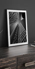 Yksivärinen kaupunkikuva Amsterdamista dramaattisilla perspektiiveillä, jossa hoikat tornit ja mastot nousevat kohti taivasta. Graafiset linjat ja terävät kontrastit luovat rytmiä ja rauhallisuutta samalla kun kesävalo piirtää julkisivut. Taiteilija Willemin kuvaama moderni, urbaani ilmapiiri. Täydellinen arkkitehtuurin ja kaupunkielämän ystäville.