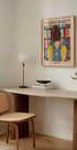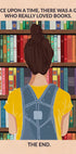 Viehättävä kuvitusjuliste tytöstä, joka seisoo värikkään kirjahyllyn edessä juhlimassa rakkauttaan kirjoihin. Leikkisä typografia lukee "Olipa kerran tyttö, joka todella rakasti kirjoja. Loppu." Täydellinen lahja kirjojen ystäville ja inspiroiva yksityiskohta kirjastoihin, lukunurkkauksiin ja viihtyisiin koteihin.