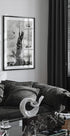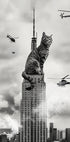 Surrealistinen ja humoristinen taideteos, joka kuvaa jättiläiskissaa Empire State Buildingin huipulla helikopterien ympäröimänä King Kongin inspiroimana parodiana. Tämä mustavalkoinen kaupunkikuva sopii täydellisesti kissojen ystäville ja hauskan kaupunkisisustuksen ystäville.