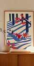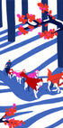 Julie Lesouefin mielikuvituksellinen guassikuva: innostunut husky-ämpäri lentää poikki kimaltelevan lumisen maiseman, kun taas kelkka leikkaa jälkiä tummien kuusien välissä. Taivas hohtaa sinisen, vaaleanpunaisen ja oranssin sävyissä, ja kylmä väreilee ilmassa. Talvisatu täynnä vauhtia, seikkailua ja pohjoismaista runoutta. Täydellinen talviunelmiin.