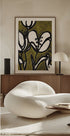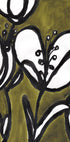 Janel Braggin abstraktit tulppaanit tanssivat sammaleenvihreän sävyin, jossa mustan musteen viivat kiemurtelevat kuin elegantit vedot oliivinvihreän kentän yllä. Sävellys tasapainottaa tummaa romantiikkaa ja modernia zeniä – energistä mutta rauhoittavaa – runollista kasvitieteellistä ilmaisua olohuoneeseen, makuuhuoneeseen tai toimistoon. Luo rauhallisuutta ja läsnäoloa huoneeseen.