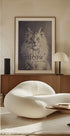 Nokkela mustavalkoinen taidejuliste, jossa on vintage-vaikutteinen muotokuva pörröisestä kissasta ja humoristinen lainaus: "miau, anonyymi kissa 1952." Tässä mallissa kissan viehätys yhdistyy typografiseen taiteeseen, joka on ihanteellinen kissojen ystäville.