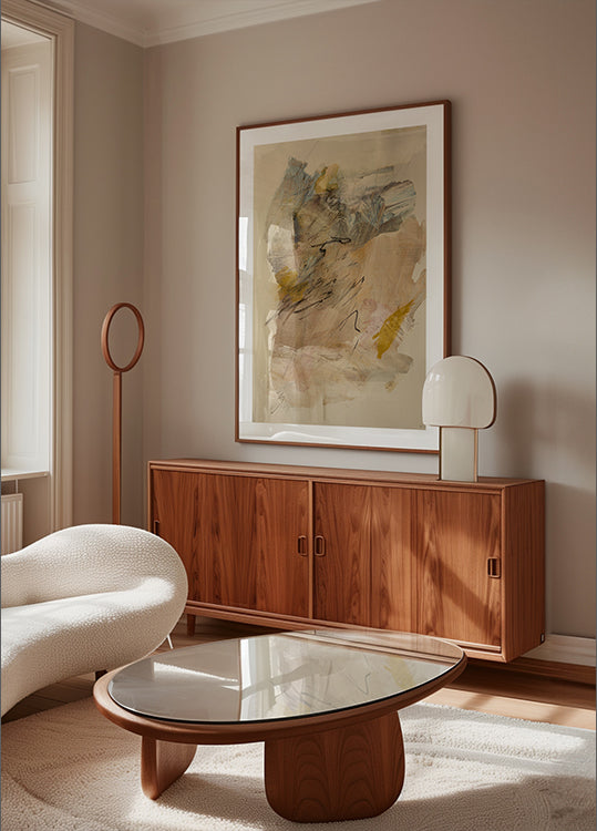 Gemma Bardotin Hot July – abstrakti sommitelma lämpimin keltaisen sävyin, beigen sävyin ja vapailla siveltimen vedoilla. Orgaaniset linjat ja leikkisät kirjoitukset luovat liikettä ja kesäistä energiaa, kun taas neutraalit kentät rauhoittavat ja tasapainottavat. Moderni juliste, joka kohottaa huonetta aurinkoisella valolla. Täydellinen olohuoneeseen, toimistoon ja luoviin kulmiin.