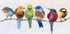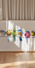 Leikkisä ja viehättävä taideteos kuudesta värikkäästä linnusta, jotka istuvat yhdessä oksalla. Jokainen lintu on maalattu yksilöllisesti rohkeilla sinisen, vihreän, keltaisen, punaisen ja ruskean väreillä luoden eloisan ja ilmeikkään koostumuksen. Täydellinen lisäämään viehätysvoimaa ja luovuutta mihin tahansa seinään.