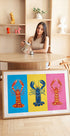 Hummerit ja hummerit Pop Art on eloisa ja rohkea printti, jossa yhdistyy rannikon viehätys ja moderni energia. Suunnittelussa on kolme elävästi maalattua hummeria kirkkaan punaisena ja syvänsinisenä, joista jokainen asettuu silmiinpistävää turkoosia, keltaista ja vaaleanpunaista taustaa vasten. Tässä teoksessa merellinen perinne yhdistyy pop-taiteen kierteeseen. Rikas, maalauksellinen tekstuuri antaa kuvitukselle tuntoelämyksen, kun taas suurikontrastinen paletti tekee siitä täydellisen katseenvangitsijan keittiössä, ruokasalissa, kalaravintoloissa tai missä tahansa tilassa, joka tarvitsee ripauksen rannikkoa.