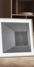 "lost perspective" af Theodoor Ferdinand viser en monokrom studie af en stadionfacade i Amsterdam. Skråtgående linjer, bølget metal og modulære felter danner et grafisk mønster, hvor lys og skygge forskubber dybden. Et køligt, arkitektonisk motiv, der balancerer ro, rytme og præcision. Perfekt til minimalistiske rum.