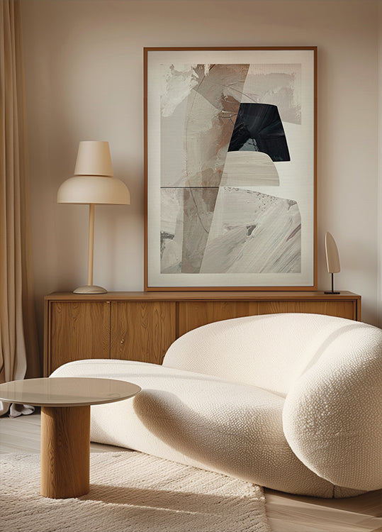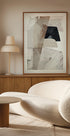 Moderni abstrakti taideteos, jossa on teksturoituja kerroksia ja rohkeita siveltimenvetoja neutraaleissa sävyissä. Tämä Dan Hobdayn nykyaikainen teos yhdistää minimalismin maalaukselliseen syvyyteen, mikä tekee siitä täydellisen lisäyksen nykyaikaiseen sisustukseen ja abstraktin taiteen kokoelmiin.