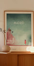 Madridin Gran Vía hehkuu iltahämärän jälkeen tyylikkäässä, retro-matkajulistetyylissä: valoisat teltat, art deco -julkisivut ja laajat bulevardit yhtyvät syvän yötaivaan alle. Ajovalot virtaavat nauhoina, siluetit pinoutuvat rohkeaksi siluetiksi, ja kaupungin ikoniset teatterit ja katot kutsuvat vaeltajia nauttimaan Madridin sähköisestä sydämestä.