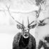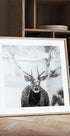 En majestætisk kronhjort står stille i tæt snefald, indrammet af vintermørk skov og blød bokeh, der forstærker den stille, nordiske stemning. I sort/hvid fremhæves gevir, pels og åndedræt i kulden. Et poetisk øjeblik fra naturens rå vinter, fanget af fotografen Alexandru Handrache. Perfekt til vinterstemning i hjemmet.