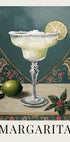 Tämä elegantti taideteos kuvaa klassista margarita-cocktailia koristelasissa, koristeltu limettiviipaleella. Koristeellista taustaa vasten siinä yhdistyvät vintage charmi ja tämän ajattoman juoman hienostunut valmistus. Täydellinen baarin sisustukseen ja cocktail-aiheisiin sisätiloihin.