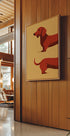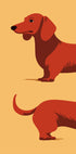 Leikkisä minimalistinen kuva mäyräkoirasta, humoristisesti esitettynä kahdessa erillisessä osassa pitkällä rungolla ojennettuna sävellyksen poikki. Tämä moderni ja erottuva taideteos vangitsee rakkaan "makkarakoiran" viehätysvoiman ja sopii täydellisesti koirien ystäville ja moderniin sisustukseen.