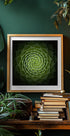 Hypnoottinen lähikuva mehevästä ruusukeesta, jossa samettiset lehdet kiertelevät lähes Fibonacci-kuviossa muodostaen mandalamaisen geometrian syviin, muuttuviin vihreisiin. Valo korostaa hienoja karvoja lehden reunalla ja luo zen-tyylinen ja graafisen eleganssin. Valokuva: Victor Mozqueda. Luo rauhallisen keskipisteen olohuoneeseen, makuuhuoneeseen tai toimistoon.