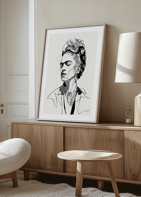 Valkoinen ruoka: Motiivi on painettu valkoisella, mattareunuksella kuvion ympärillä. Tämä antaa puhtaan ja tyylikkään ilmeen, joka korostaa aihetta ja antaa galleriahenkisen ilmeen.