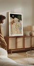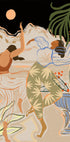 Kuutamoinen tanssijuliste vangitsee hetken puhtaasta ilosta ja vapaudesta kahden naisen liikkuessa sulavasti täysikuun lämpimässä hehkussa. Unenomaisella paletilla maanläheisiä beigen sävyjä, syvämustaa ja rehevää vihreää luonto yhdistyy ilmeikkääseen ihmismuotoon. Löysät, maalaukselliset linjat ja kuvioitu varjostus antavat teokselle dynaamisen, lähes eteerisen laadun. Sujuvat kankaat raidoilla ja lehtikuvioilla heiluvat liikkeen mukana, kun taas ympäröivät kasvit ja klassinen uurna lisäävät eleganssia. Tämä taideteos huokuu huoletonta henkeä ja toimii vaikuttavana keskipisteenä boheemissa, moderneissa tai luonnon inspiroimissa sisätiloissa.