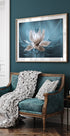 Tämä tyylikäs makrovalokuva vangitsee herkän kukan pehmeän valkoisen ja sinisen sävyissä korostaen terälehtien suonet ja kimaltelevia kastepisaroita. Unenomainen tunnelma ja yksityiskohtaiset lähikuvat luovat hienostuneen ja rauhoittavan taideteoksen, joka sopii täydellisesti moderniin kasvitieteelliseen kuvaseinään.