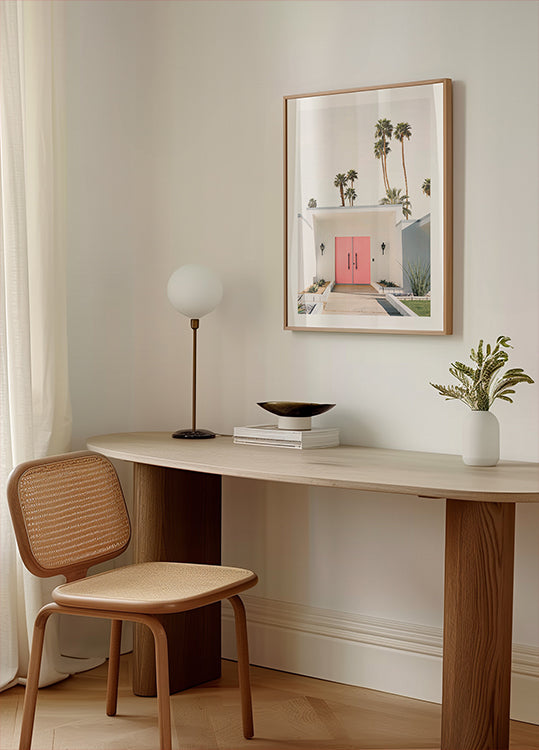 Valkoinen ruoka: Motiivi on painettu valkoisella, mattareunuksella kuvion ympärillä. Tämä antaa puhtaan ja tyylikkään ilmeen, joka korostaa aihetta ja antaa galleriahenkisen ilmeen.