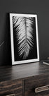 Palmblad_004 on yksivärinen lähikuva tyylikkäästä palmunlehdestä, jossa valo ja varjot kulkevat graafisina viivoina hienojen kylkiluiden yli. Syvä musta tausta luo draamaa ja rauhallisuutta samanaikaisesti, kun taas lehtien rytmi antaa huoneelle minimalistisen keskipisteen – täydellinen pohjoismaiseen sisustukseen ja aavistus Japandista.