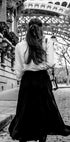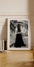 Siro mustavalkoinen valokuva naisesta kävelemässä Eiffel-tornin alla, yllään lentävä hame ja rusetilla sidotut hiukset, herättää pariisilaisen charmin ja ajattoman eleganssin. Tämä printti vangitsee Pariisin katujen ja muodin romantiikkaa, ja se on lumoava julistus sisätiloihin, jotka ovat saaneet inspiraationsa matkustamisesta, tyylistä ja hienostuneisuudesta.