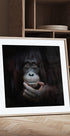 Voimakas lähikuva hymyilevästä, mietteliästä orangutanista, joka on kuvattu matalassa, tunnelmallisessa valaistuksessa, joka korostaa turkin tekstuuria ja syviä, ihmisen silmiä. Saksalaisen valokuvaaja Antje Wenner-Braunin Rostockin eläintarhassa kuvaama kohde kutsuu hiljaisen pohdiskelun ja lämpimän, empaattisen rauhallisuuden huoneeseen. Täydellinen olohuoneeseen, toimistoon tai luovaan tilaan.