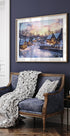 Astu rauhalliseen talvikaupunkiin, jossa lumihiutaleet putoavat äänettömästi lumisten kattojen, mäntyjen ja jäätyneen jäähallin yli. Pienet hahmot liikkuvat lämpimien valojen välissä ikkunoissa, kun taas kirkas talvitaivas antaa kohtaukselle nostalgista hehkua. Tunnelmallinen kunnianosoitus viihtyisyydelle ja talven tyynelle. Täydellinen talven taikuuden luomiseen olohuoneeseen, eteiseen tai lastenhuoneeseen.