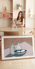 Uppoudu rauhalliseen, moderniin asetelmaan: Dan Hobday Bottles yhdistää pehmeän beigen ja vaaleanpunaisen sävyt luotettaviin siveltimen vedoin, jotka viittaavat kokoelmaan graafisia, minimalistisia muotoja. Maalauksellinen rakenne ja ilmava koostumus antavat huoneeseen tyylikkään, lämpimän ja modernin rauhan. Täydellinen skandinaaviseen sisustukseen.