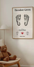 Ajaton persoonallinen vauvajuliste, jossa on herkkiä vastasyntyneen jalanjälkiä ja mukautettuja syntymätietoja – nimi, päivämäärä, aika, paino ja pituus. Tämä minimalistinen ja tunteellinen seinätaide on täydellinen muisto uusille vanhemmille tai harkittu lahja vauvakutsuun tai lastenhuoneen sisustukseen.