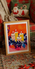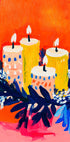 Treechild’s Radiant Candle Glow captures the hush of winter nights: a cluster of flickering candles painted in bold, childlike brushstrokes, casting warm oranges, pinks, and blues across a dreamy backdrop. Cozy and festive, it brings Advent charm and holiday light to modern interiors all season. Perfect for Christmas glow.