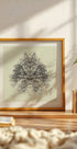 Graafinen, peilattu oksien kuvio muodostaa hypnoottisen siluetin, joka muistuttaa Rorschach-testiä. Orgaaniset linjat luovat jokaisella katseella uusia hahmoja ja kutsuvat tulkintaan. Puhdas, vaalea tausta antaa aiheelle tilaa ja tekee Nadav Jonasin työstä vahvan, modernin ilmeen kotona.